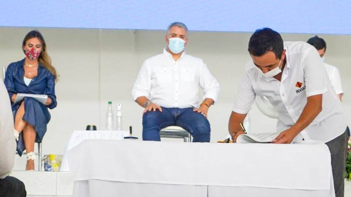 Duque firmó, al igual que otros mandatarios y el director de Invías, el contrato de obra e interventoría del corredor Santa Lucía – Moñitos, en Córdoba, por un valor de $ 190 mil millones; y dos nuevos convenios de 8 vías terciarias en los dos departamentos que suman 91 kilómetros y en los que invertirán $ 37 mil millones.