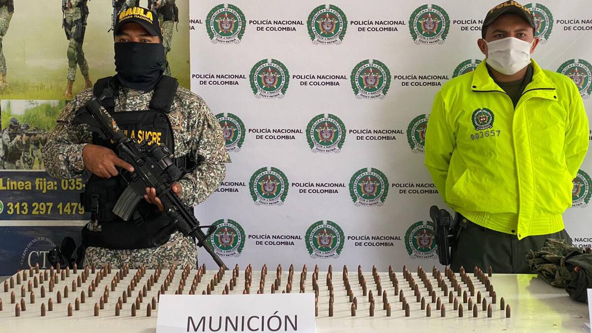 El comandante de la Policía en Sucre, coronel William Rincón Zambrano, dijo que para ubicar esta munición que estaba en una caleta contaron con el apoyo de la red cívica.