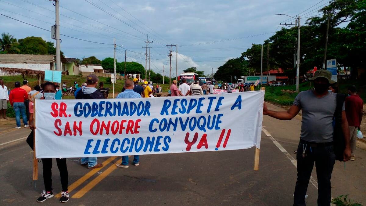El paso entre Sucre y Bolívar por la Transversal del Caribe fue restablecido al inicio de la tarde de este martes por parte de un grupo de ciudadanos que lo habían bloqueado desde las 8:00 de la mañana a la altura del municipio de San Onofre.