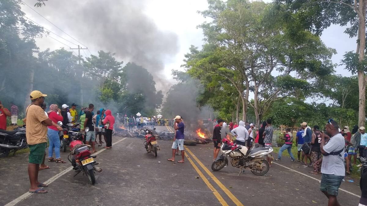 Más de 7 horas completa el bloqueo de la vía San Onofre-Cartagena, a la altura del corregimiento de Plan Parejo.