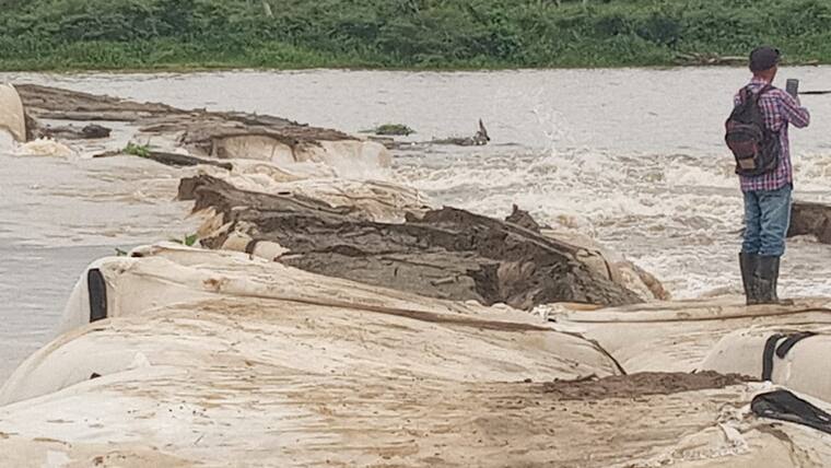 Oswaldo Díaz Pupo, el guardián de las obras de cerramiento de Cara 'e gato, en la Mojana, le confirmó a EL HERALDO que la nueva ruptura por cuenta de las fuertes corrientes de agua en el río Cauca se produjo a escasos 100 metros de donde se abrió a finales de agosto de 2021.