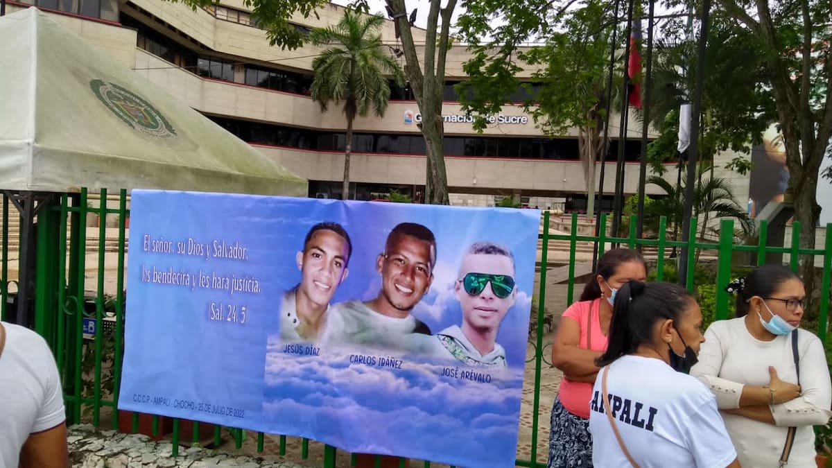 Los familiares de los tres jóvenes que fueron asesinados en el corregimiento de Chochó (Sucre) solicitaron que los 10 patrulleros involucrados en el crimen paguen la 'máxima condena' por los cargos que les imputó la Fiscalía.