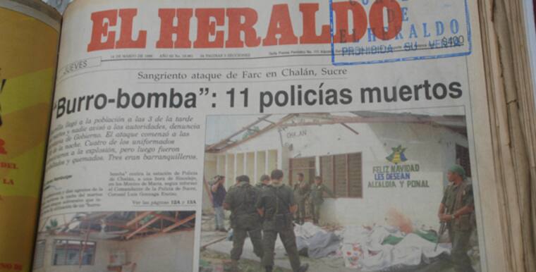 Primera página de EL HERALDO informando sobre el cruento ataque de guerrilleros de las Farc.