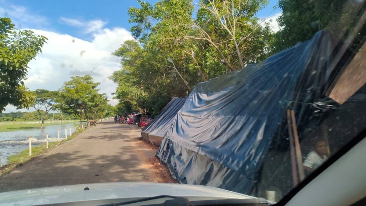 La vía San Marcos-Majagual ahora no solo está llena de las desbordadas aguas del río Cauca sino también de los cambuches en los que pasan el día y duermen muchos habitantes de la zona de El Rabón que tuvieron que abandonar sus territorios por cuenta de la fuerte ola invernal que los afecta.