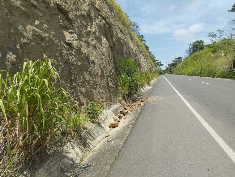 Por varias horas, en su doble calzada, estuvo cerrada la vía donde aún no se ven trabajos que minimicen el riesgo de caída de unas rocas que están ‘aguantadas’ por unas mallas.