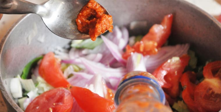 Oliverio Trujillo también hace los picantes y explica que no solo varía la clase del ají, sino el líquido que se le adiciona, que puede ser agua de plátano maduro, piña, panela, maíz, mango, coco, vinagre o suero.