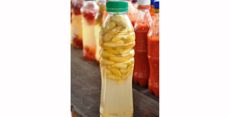 'Los picantes de El Piñal duran años porque les echamos preservativos. Además, cuando se acaba el líquido, el cliente le puede echar agua de panela, suero o vinagre, porque el ají siempre va a picar', subraya.