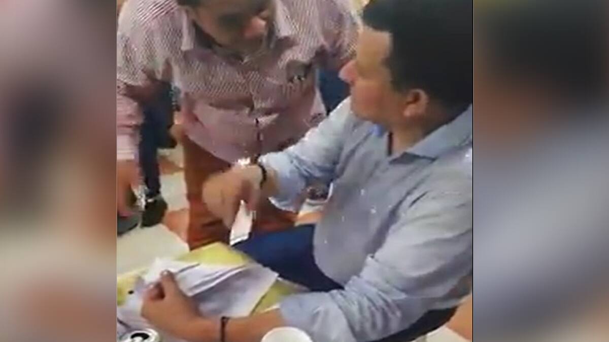 En el video de la celebración que circula en redes aparece Ortega, quien con lapicero en mano revisa unos documentos. Junto al funcionario se observan un vaso lleno con un líquido amarillo y una lata de cerveza, mientras al fondo se escucha música vallenata y varias personas bailando.