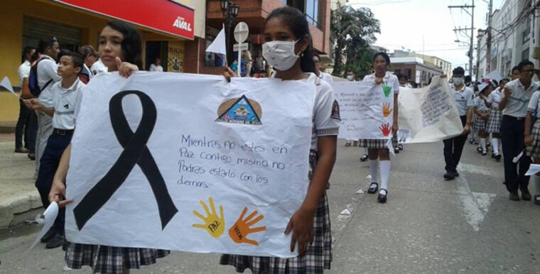 Unos 3 mil estudiantes de 10 instituciones educativas oficiales de Sincelejo se movilizaron desde las primeras horas de este miércoles para rechazar la ola de violencia que azota a la ciudad y que el jueves anterior cobró la vida del celador de la Institución Educativa Dulce Nombre de Jesús.