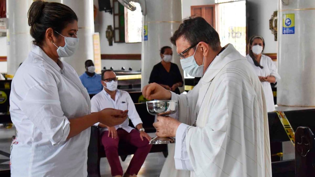 A propósito de estos últimos, muchos por no inscribirse con antelación como lo demandan los protocolos de bioseguridad, no pudieron ingresar al templo y algunos tuvieron que conformarse con escuchar la palabra de Dios desde las afueras de la puerta principal que permanecerá cerrada con el protector.
