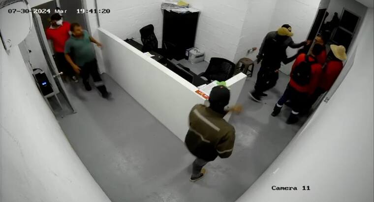 Los asaltantes vestían jeans, busos de colores oscuros y naranja y todos portaban gorras, pasamontañas y tapabocas.