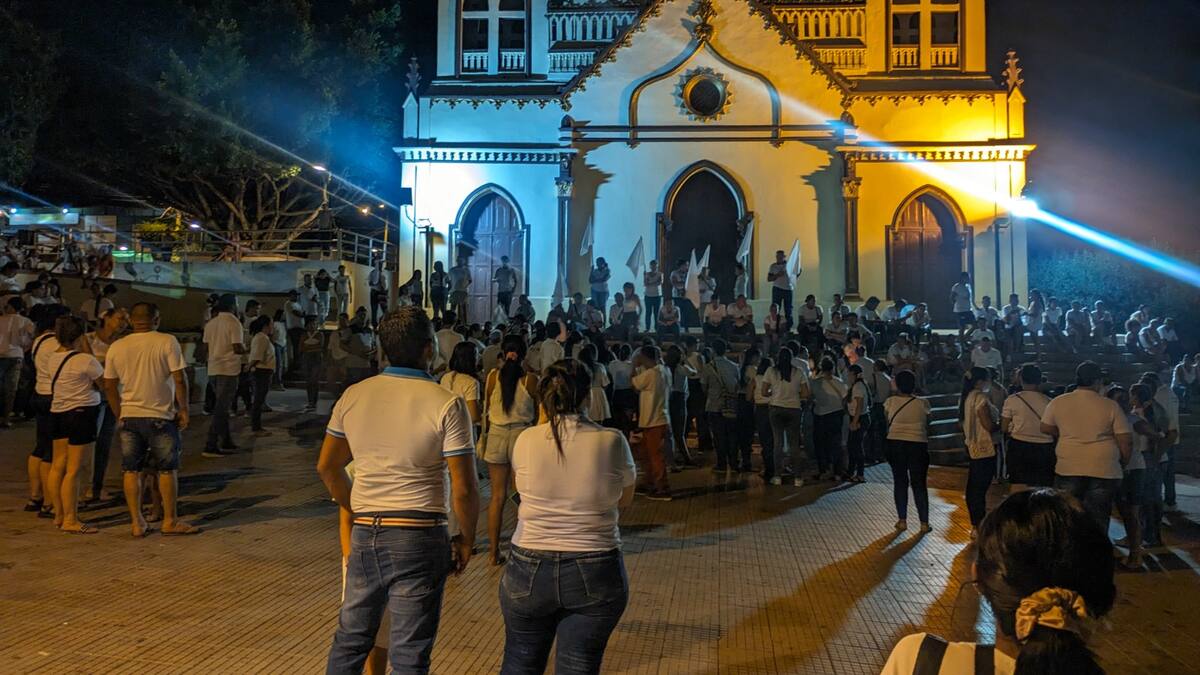 Portando camisetas, banderas y globos de color blanco, hombres y mujeres de todas las edades se apostaron frente a la entrada principal de la Parroquia San Francisco de Asís, para elevar una oración por el eterno descanso de un gran líder, encendieron velas y a su vez le exigieron a las autoridades que hagan justicia y que este atroz crimen no quede en la impunidad.