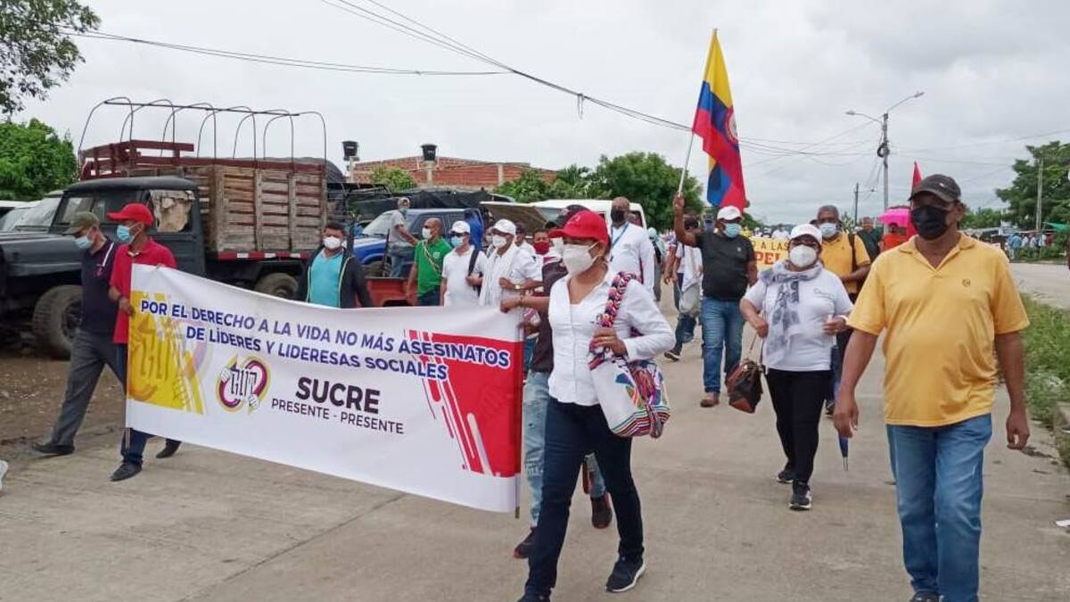 Hombres y mujeres se movilizaron desde El Pescador hasta la sede de la Gobernación de Sucre.