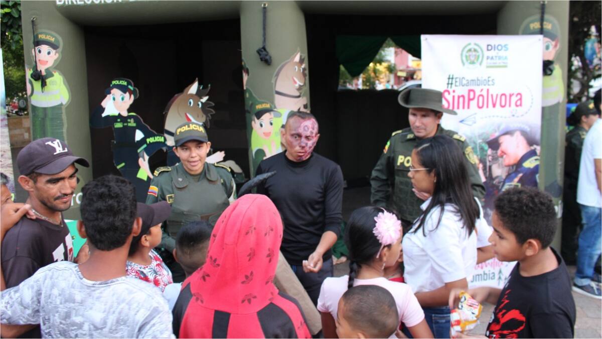Previo al lanzamiento de este plan la Policía llevó su oferta institucional al Parque donde concientizaron a la ciudadanía sobre los riesgos de manipular pólvora y consumir licor adulterado, los cuales fueron ilustrados con cuadros vivos.