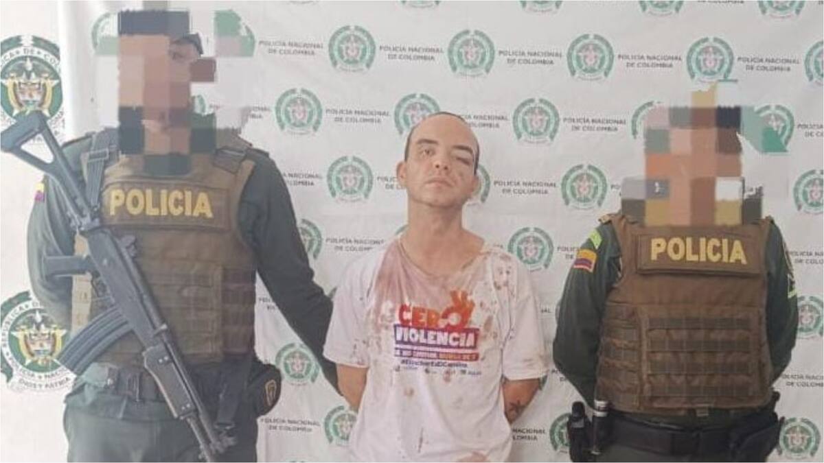 La detención de Sebastián Arango se produjo en flagrancia, minutos después de haber agredido a la joven en una vía pública, de hecho la camiseta que lucía paradójicamente con el mensaje ‘cero violencia’ estaba sucia de sangre.