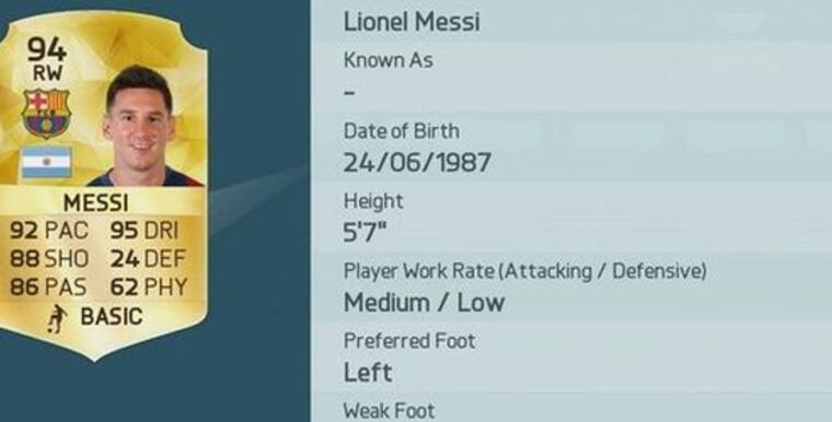 Según Electronic Arts el mejor jugador de todo el juego hasta el momento de su lanzamiento es Lionel Messi con una valoración de 94 puntos, seguido de cerca por Cristiano Ronaldo, que tiene un puntuación de 93.