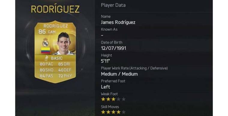 13. James Rodríguez - Real Madrid Cf (España) - (+1 Ovr) 86