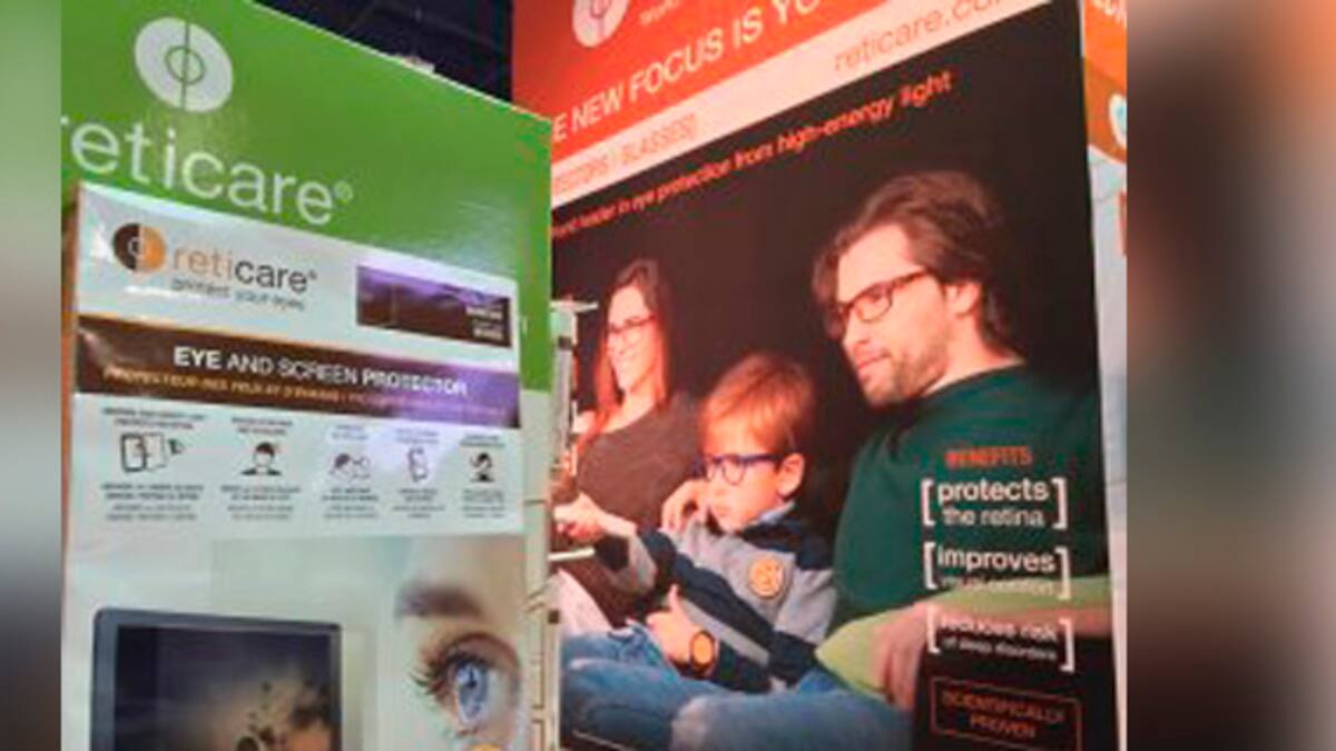 La empresa española Reticare presentó en la feria de tecnología CES en Las Vegas un protector de vidrio templado que absorbe la luz de alta energía de las pantallas de los dispositivos electrónicos y unas gafas de protección ocular que bloquean esa luz.