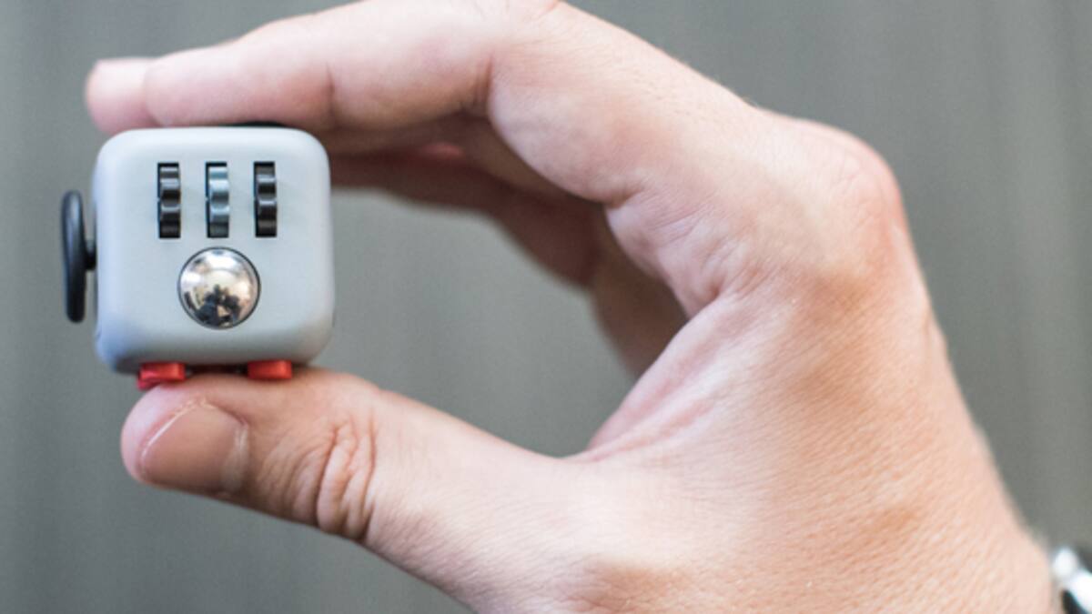 Fidget Cube es un pequeño cubo que tiene en cada una de sus seis caras engranes que giran, un dial y botones con y sin sonido para aliviar la ansiedad. El dispositivo cabe en los bolsillos y cuesta US$19.