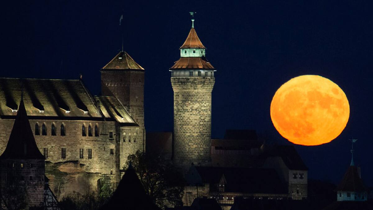 Una luna que torna del naranja al amarillo tras la nave Soyuz MS-03, ya lista para ser lanzada desde el Cosmódromo de Baikonur (Kazajistán), junto al castillo de Karserburg en Nuremberg (Alemania) en una imagen de cuento, o sobre la pagoda Uppatasanti de Naipyido (Birmania). Son algunas de las fotografías más impactantes que deja esta jornada.