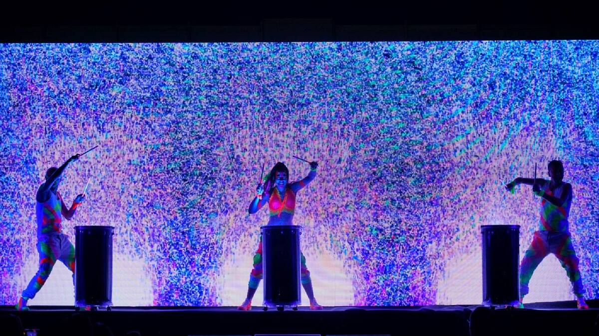 La sala se llenó de colores fluorescentes provenientes de una pantalla led gigante. Al ritmo de la percusión aparecieron bailarines en escena sincronizando sus movimientos con las animaciones de la pantalla que tenían a sus espaldas, una muestra envuelta en arte de lo que Colombia 4.0 trae en su edición 11.