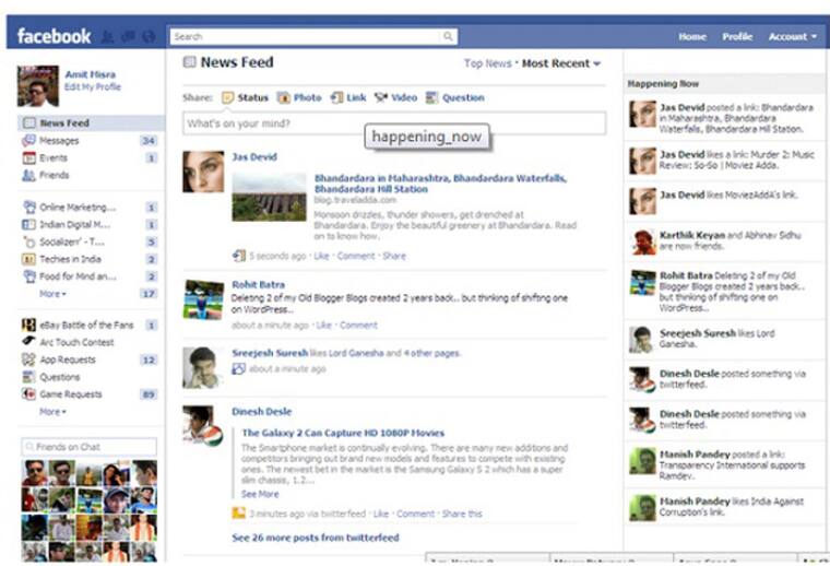 La red social anunció este viernes que puso a prueba una nueva aplicación llamada ‘Happening Now’ (lo que pasa ahora) la cual permite a los usuarios ver en tiempo real la actividad de sus amigos en la red. A través de esta nueva característica, los cibernautas podrán conocer qué noticias comparten, qué videos suben y qué enlaces les gustan. La información se encuentra visible en una columna en el lado derecho en ell ‘homepage’ de un selecto grupo de usuarios, menos del 1% de los 600 millones de clientes que amasa la gigantesca red social.