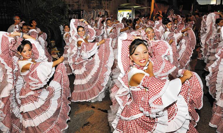 Como el mejor abrebocas a la lectura de El Bando, se realizó anoche un colorido desfile con los más veteranos grupos folclóricos, en el que participaron la soberana, el Rey Momo y las candidatas populares. Hubo buena música.