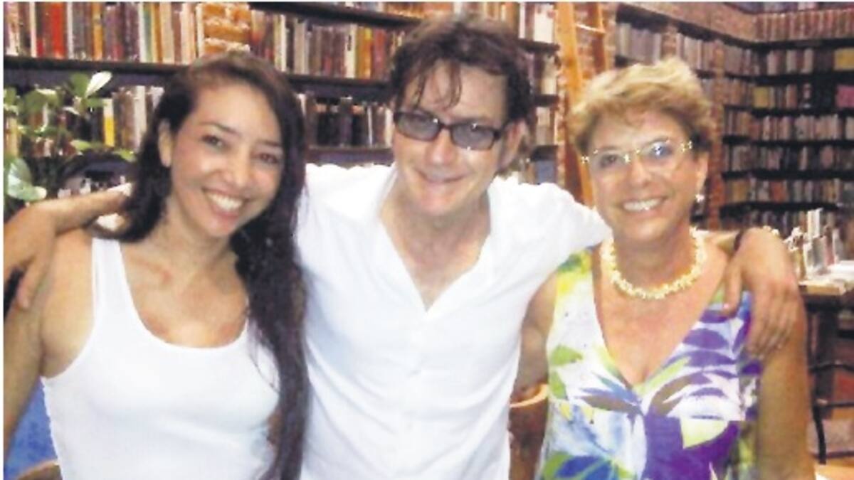'Es muy hermosa la librería', le dijo Sheen a Gutiérrez, quien junto a Mónica Romero se tomaron una foto con el actor. 'Le pedimos la foto y aceptó encantado. Sus guardaespaldas nos tomaron la foto', comentó la dueña de la librería.