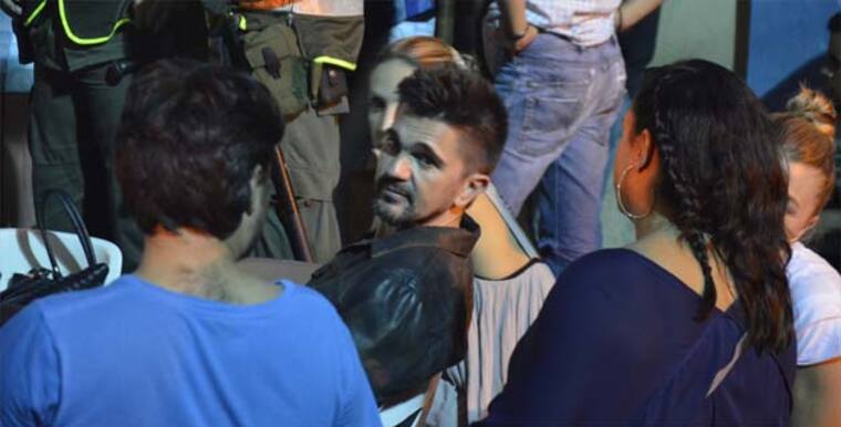 En las 15 horas que duró la filmación ( de 2:00 p.m. a 5:00 a.m.), un completo y muy profesional equipo de producción que se movía de un lado a otro por toda la calle, un potente picó que ingresó al set de grabación, la belleza de seis excandidatas al Reinado de la Independencia y un Juanes, que aunque se dejó ver poco, mostró siempre la empatía y el carisma que han marcado su carrera, se convirtieron en la atracción de transeúntes y extranjeros que cada día circulan en esta calle de comercio y rumba nocturna.