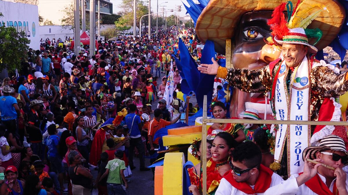 El rey momo Álvaro Bustillo Solano presidió el desfile montado en otra versión de su carroza ‘Carnavales del Mundo’ y estuvo acompañado de la danza que dirige hace 20 años, el Garabato del colegio Marco Fidel Suarez. (Ver orden del desfile Batalla de Flores Calle 17).