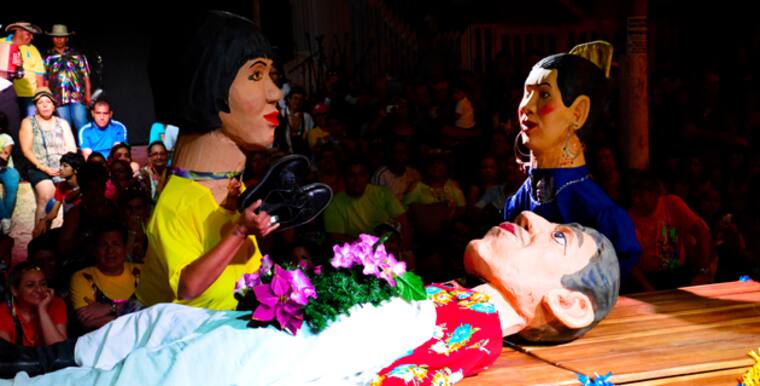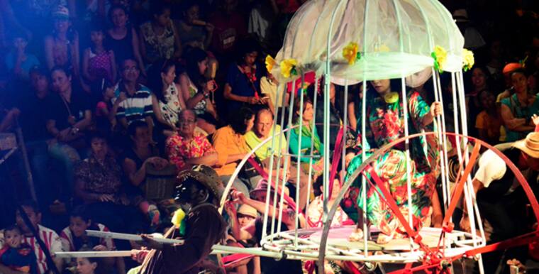 La compañía artística Muro de Espuma, desarrollando la obra ‘Va... porque así es la vida’, inspirada en Los Funerales de la Mamá Grande.