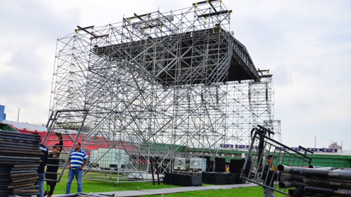 Desde la mañana de ayer comenzó el montaje de lo que será este espectáculo que contará con una tarima de 20 metros de largo, luces robóticas y un sonido encargado especialmente a dos ingenieros en el área, tal como lo ha pedido Marc Anthony.