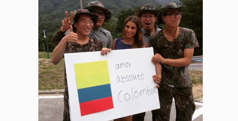Al bajar de la tarima, Cristy fue recibida por varios soldados coreanos, que sostenían un cartel donde decía: 'Amor absoluto por Colombia'.