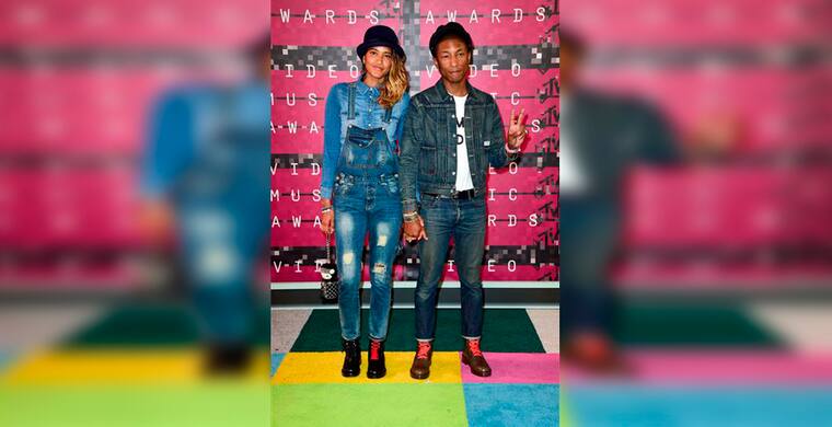 Una embarazada Kim Kardashian acompañó a su marido Kanye West, uno de los premiados de la noche, ataviada con un vestido largo ceñido con lazos en el profundo escote. West llevó un conjunto de estilo deportivo y holgado formado por un jersey y pantalón remangado de color gris.