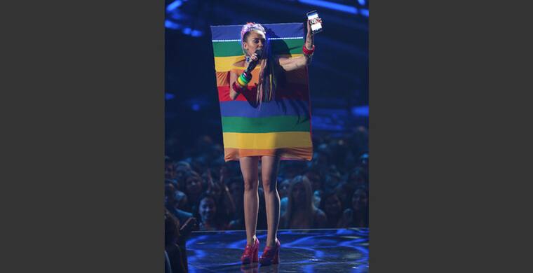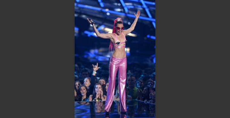 Cyrus cerró el espectáculo en el Teatro Microsoft de Los Angeles con una actuación que comenzó con la frase: "Sí, yo fumo marihuana".