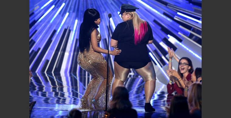 Fue sólo uno de los momentos dramáticos de la entrega de premios. Nicki Minaj, tras aceptar el honor al mejor video de hip hop por "Anaconda", reprendió a Miley Cyrus luego que la cantante de 22 años dijera en una entrevista reciente que la rapera estaba siendo una mala perdedora al quejarse de que no había sido nominada a video del año.
