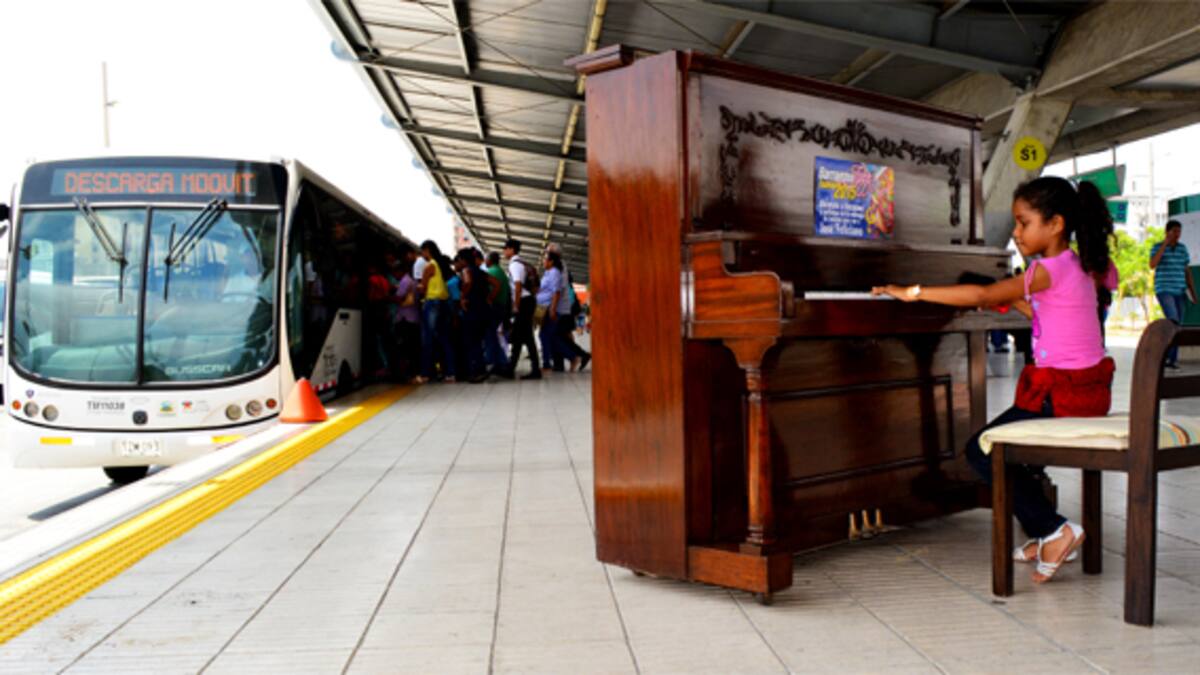 La melodía de un piano clásico se sumó ayer a los sonidos de pitos, murmullos y ruidos de motores en la Estación Joe Arroyo de Transmetro. Ningún concertista famoso ocupó el banquillo frente al instrumento; sin embargo, no faltaron intérpretes en la jornada que orquestó Barranquijazz como un anticipo del festival que se tomará la ciudad la próxima semana.