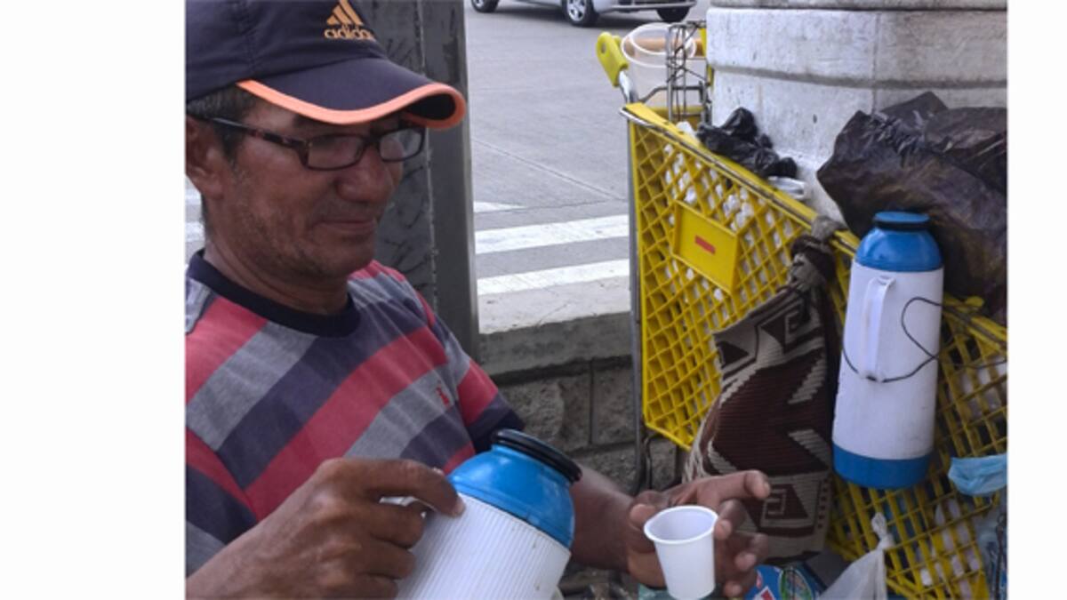 Nelson Cabezas, de 60 años, es uno de ellos, lleva cuatro años vendiendo café en las calles de Barranquilla y actualmente está instalado en la esquina contigua a la estación de Transmetro Joe Arroyo, donde ya tiene su clientela fija.