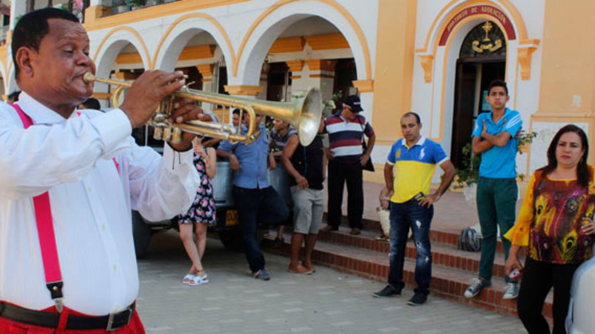 Su afirmación la reitera Gabriel Jiménez Morillo, un cartagenero que desde hace 33 años toca la trompeta. Viste un pantalón rojo con tirantes y una camisa blanca; su pulida presencia contrasta con la antigua plaza de mercado de Mompox y la iglesia María Inmaculada. La imagen parece sacada de una postal. Jiménez pasea lentamente mientras sostiene orgulloso su instrumento, mientras que las notas de las canciones de Frank Sinatra y los Beatles capturan la atención de los transeúntes que se detienen a escucharlo, aplaudirlo o darle alguna contribución económica. 'Yo toco de todo, lo que me pidan. Esto es como YouTube con banda ancha', dice con humor.