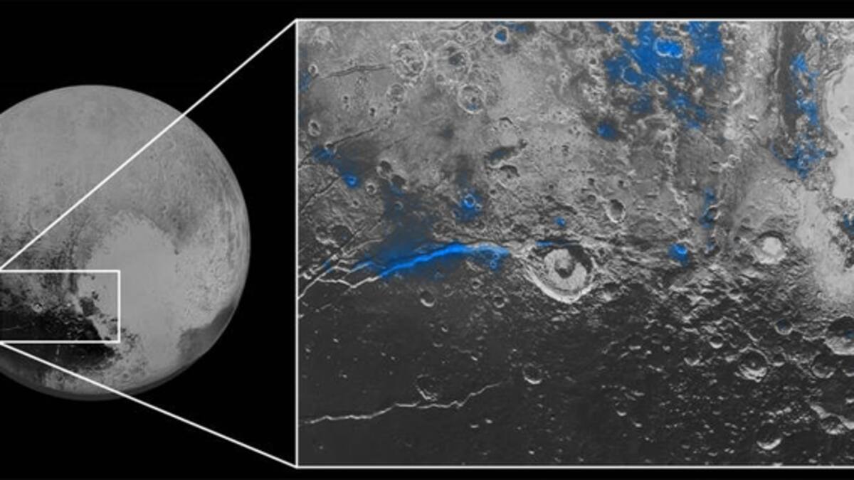 En un segundo hallazgo significativo, New Horizons ha detectado numerosas pequeñas regiones con agua helada expuesta en Plutón. El descubrimiento fue realizado a partir de datos recogidos por el espectrómetro Ralph de New Horizons.