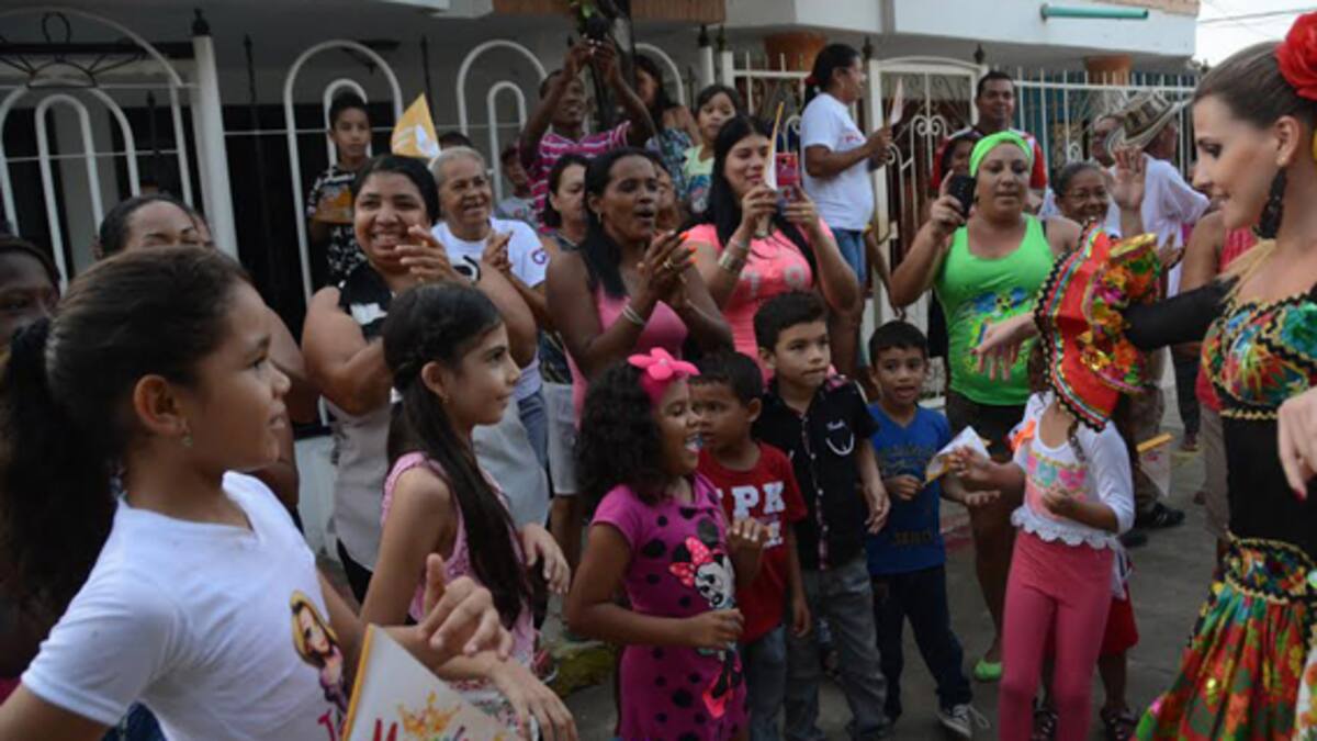 El Pueblo fue el primer barrio que visitó Marcela, donde la esperó la candidata a Reina de Reinas, Daniela Contreras, y un centenar de pequeños, algunos vestidos de angelitos y otros muy carnavaleros. Luego arribó al barrio Lipaya, donde fue recibida al son de ritmos africanos, en medio de una presentación de un grupo folclórico y la candidata del sector, Gleydis Molinares.