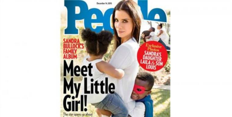En la portada de la revista se puede observar a Bullock con Laila de espaldas y en sus brazos, mientras que su hijo Louis aparece abrazando por detrás a su madre.