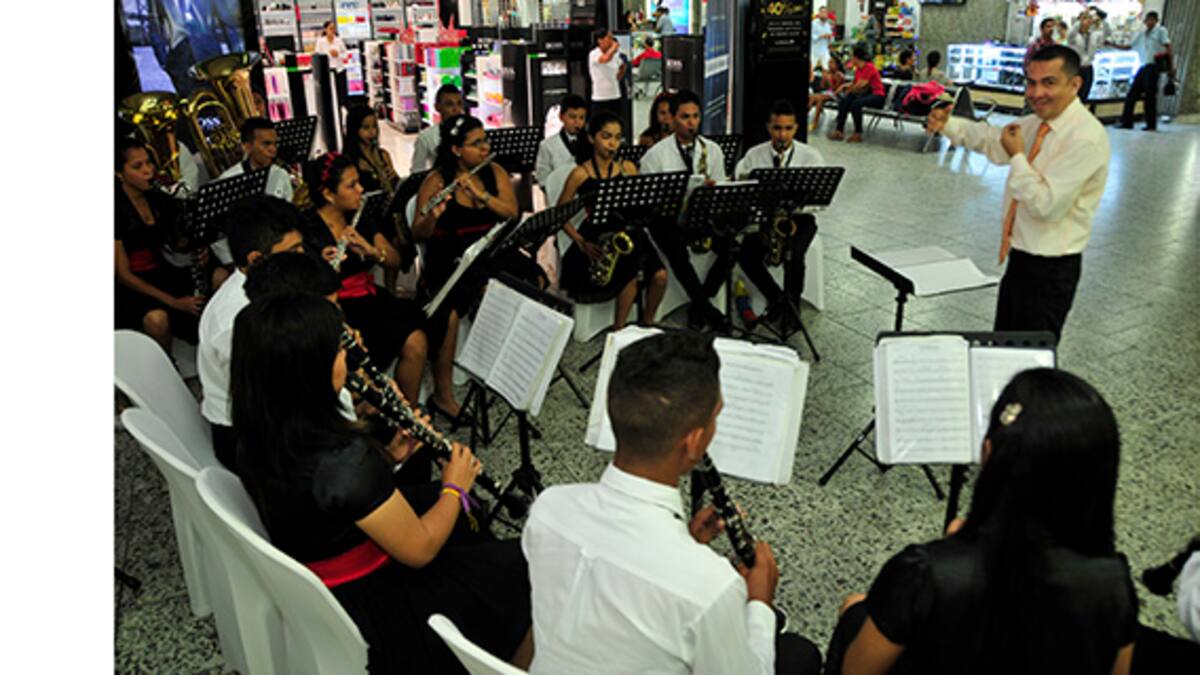 Quienes llegaban o salían de la ciudad la mañana de ayer desde el Aeropuerto Internacional Ernesto Cortissoz de Barranquilla, fueron sorprendidos por un grupo de niños y jóvenes que ambientaban el lugar con un concierto sinfónico.