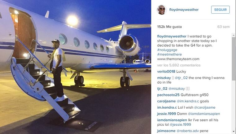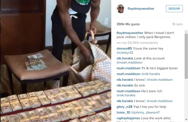 El boxeador estadounidense no oculta su extravagante estilo de vida, por el contrario, hace un recorrido fotográfico con billetes de dólares, autos, viajes y mujeres.