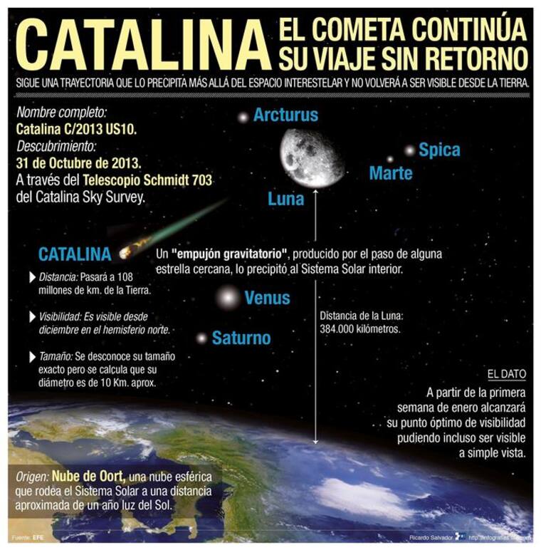 Este cometa, conocido técnicamente como C/2013 US10, fue descubierto el 31 de octubre de 2013. Procede de la Nube de Oort, una gran reserva de cometas que hay en el Sistema Solar exterior, que está ubicado a un año luz de distancia del Sol.