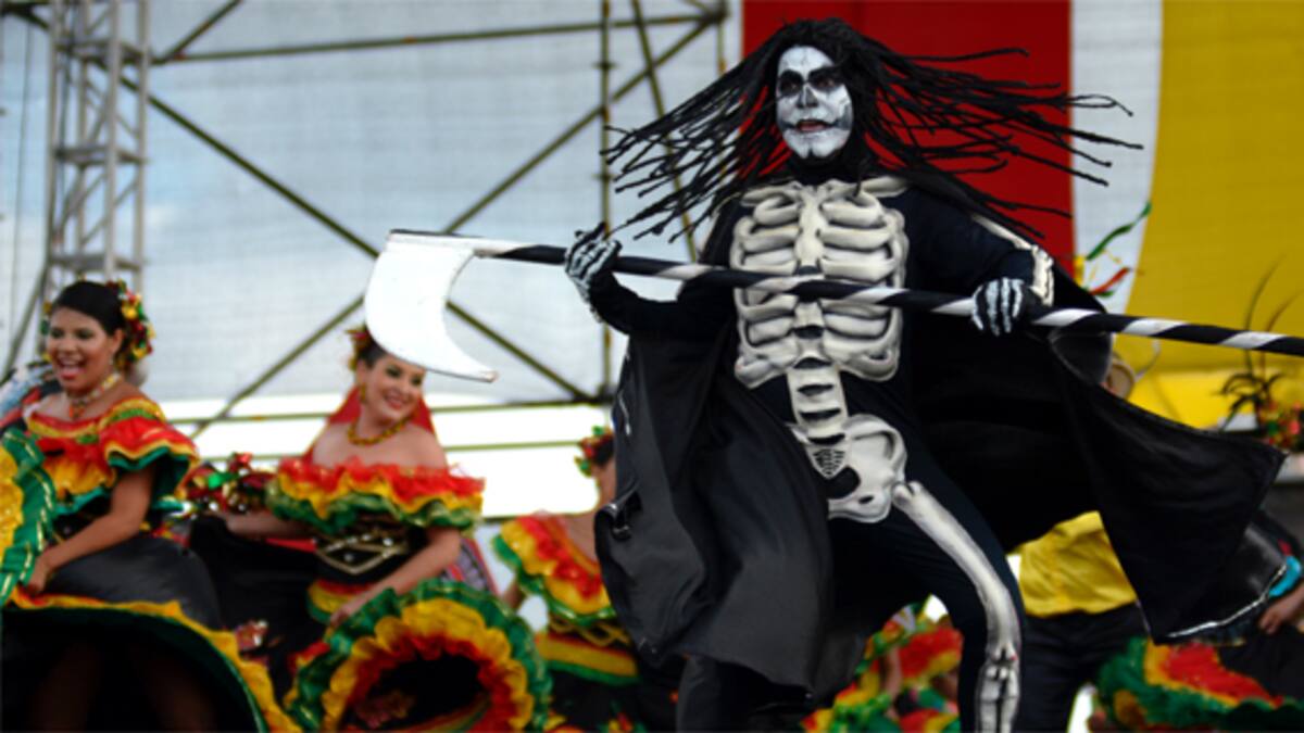 Hasta Cantinflas y la muerte carnavalearon anoche en la tarima del Estadio Romelio Martínez, en medio del derroche de brillo, color y sabor que le pusieron las cumbiambas, congos, garabatos, son de negros y mapalés a la Fiesta de Danzas y Cumbia.