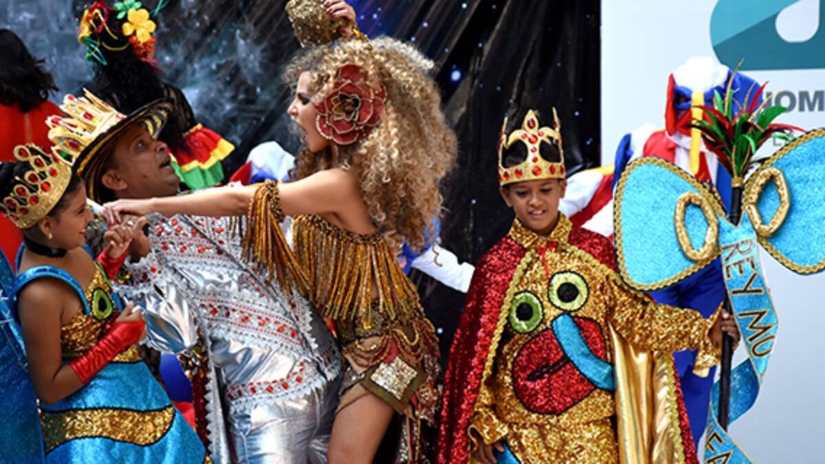 Los pequeños carnavaleros, Antonella y Ronaldo, también lucirán una creación de aprendices de la Uniautónoma. Ellos representarán unas ‘Marimonditas’ de fantasía, en alusión al jocoso disfraz, que es el más desordenado del Carnaval. Ambos atuendos de los reyecitos fueron confeccionados a base de pailette, lamé, trencillas y millerat.