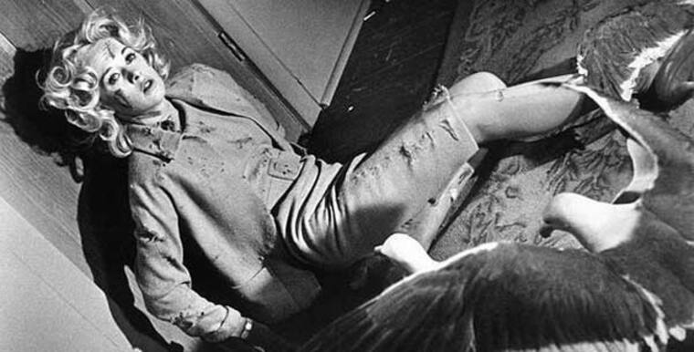 La película fue basada en el relato de la escritora Daphne Du Maurier. En esta entrega, Hitchcock una vez más convirtió algo inofensivo y rutinario, como los pájaros, en la materia prima del horror más irracional. Aquí, el Apocalipsis tenía la forma de una infinita bandada de aves que arrasaba un pueblo del Norte de California. En el filme, el comportamiento de los pájaros se hace cada vez más extraño, hasta llegar al punto en el que todo se vuelve un caos con explosiones y ataques por parte de las aves de la zona. La cinta finaliza con un auto moviéndose lentamente a lo largo de lo que parece un suelo cubierto de pájaros.
