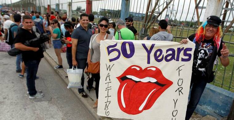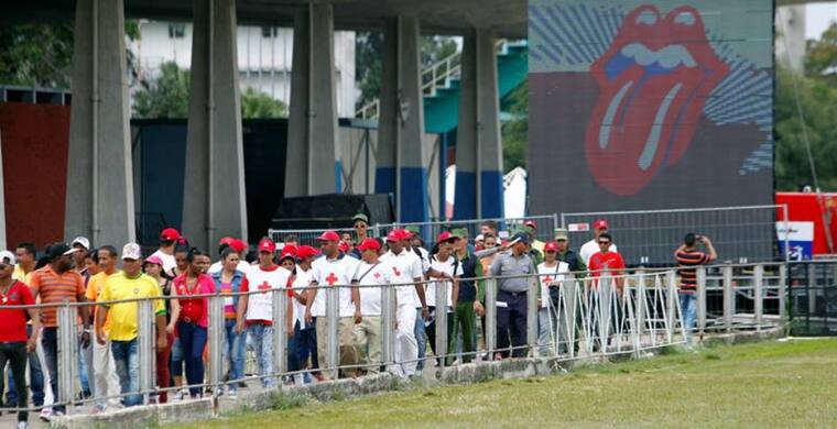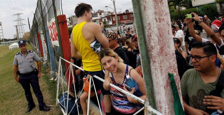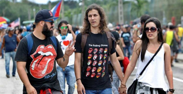 Los más puntuales: fans evidentes de la banda británica, inconfundibles con sus camisetas y emblemas con el logo de la gran lengua roja que identifica a "Sus Satánicas Majestades" y un sinfín de insignias, de Cuba, de Estados Unidos y del Reino Unido.