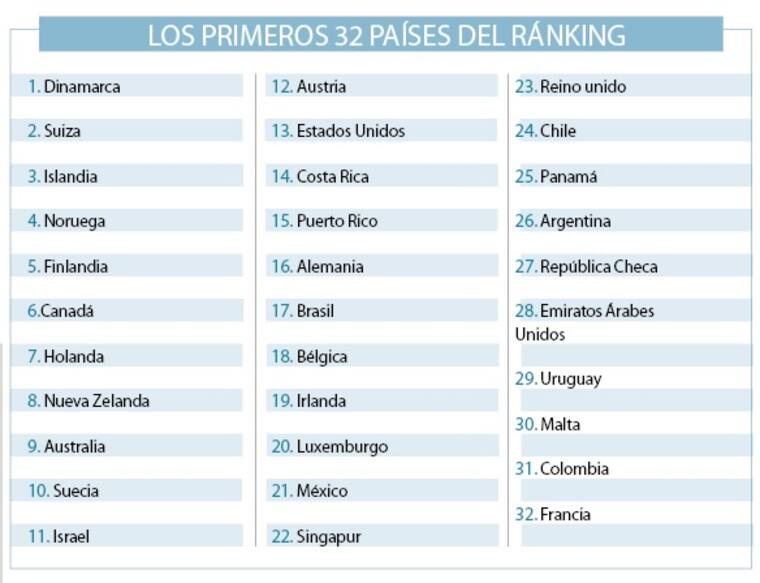 Durante todas las publicaciones, Colombia obtuvo su peor calificación en 2012, año en que estuvo en la posición 41. En 2013 estuvo en el puesto 35, en 2014 no se publicó el informe y en 2015 ocupó el puesto 33.